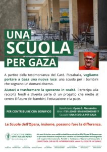 Insieme possiamo contribuire a dare forma a questo grande progetto, possiamo dimostrarci consapevoli del nostro tempo e dire “noi ci siamo”, come chi vive e prega ogni giorno nella Striscia, fa con determinazione.